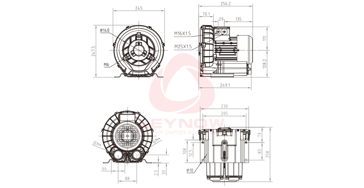 電機功率:2.2 Kw 極限真空:230 mBar 額定電壓:200-240△/345-415Y 額定流量:270 m3/h