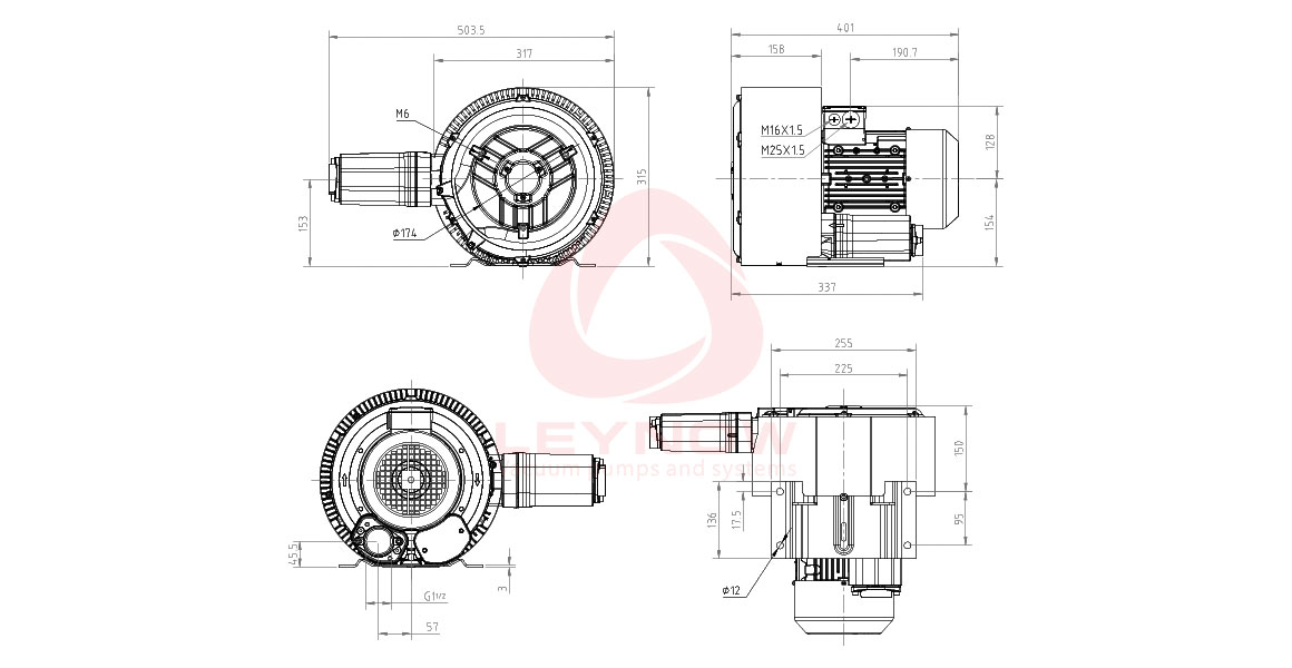 電機功率:1.5 Kw 極限真空:260 mBar 額定電壓:200-240V 額定流量:150 m3/h 額定電流:9.0 A 最大吹力:120 mBar 噪聲等級:66 dB(A) 產品重量:25 Kg