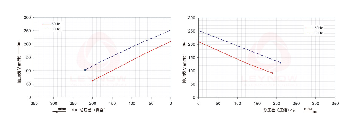 電機(jī)功率:12.5 Kw 極限真空:210 mBar 額定電壓:345-415△/600-720Y 額定流量:1370 m3/h