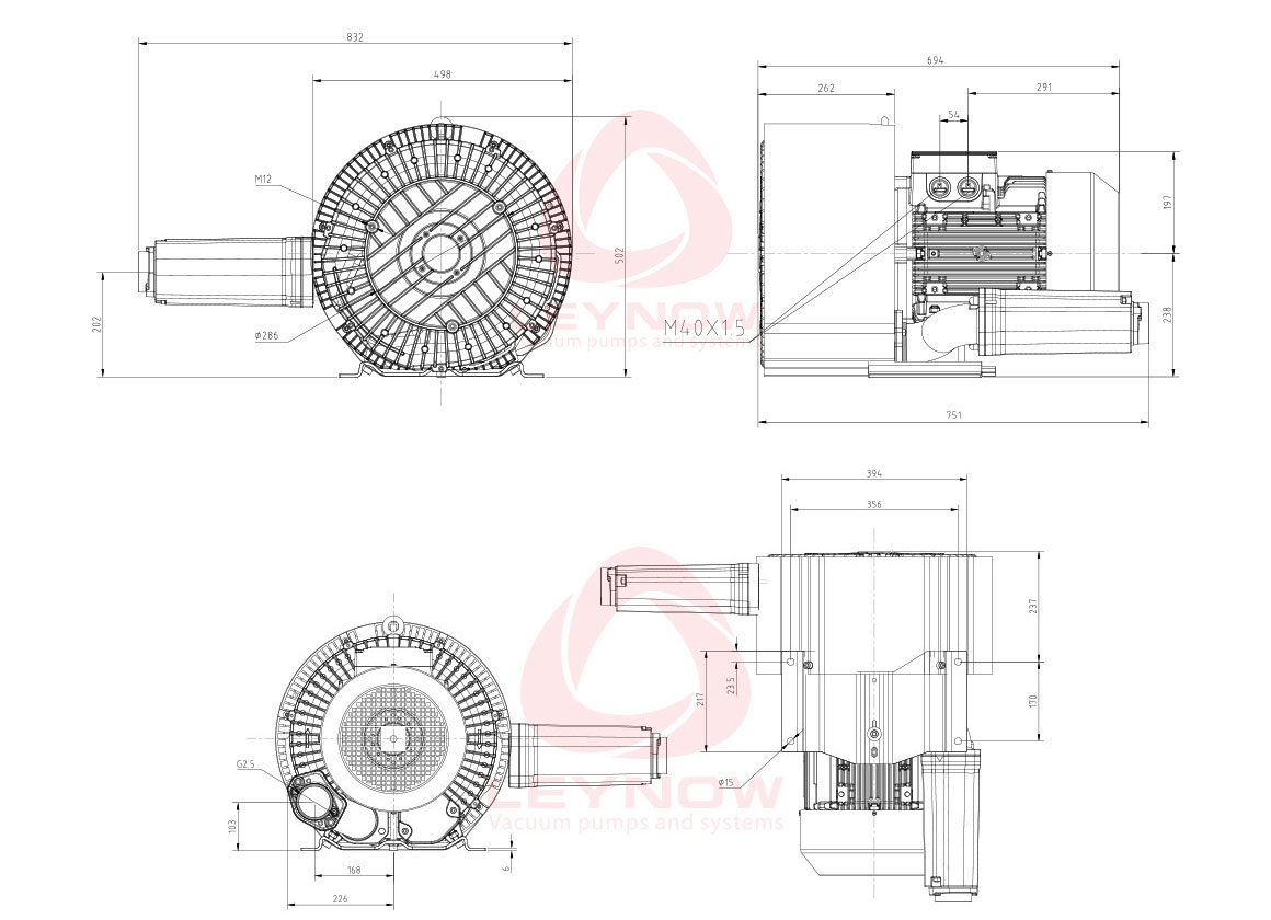 電機功率:7.5 Kw 極限真空:400 mBar 額定電壓:345-415△/600-720Y 額定流量:520 m3/h 額定電流:16.7 A 最大吹力:240 mBar 噪聲等級:74 dB(A) 產品重量:87 Kg