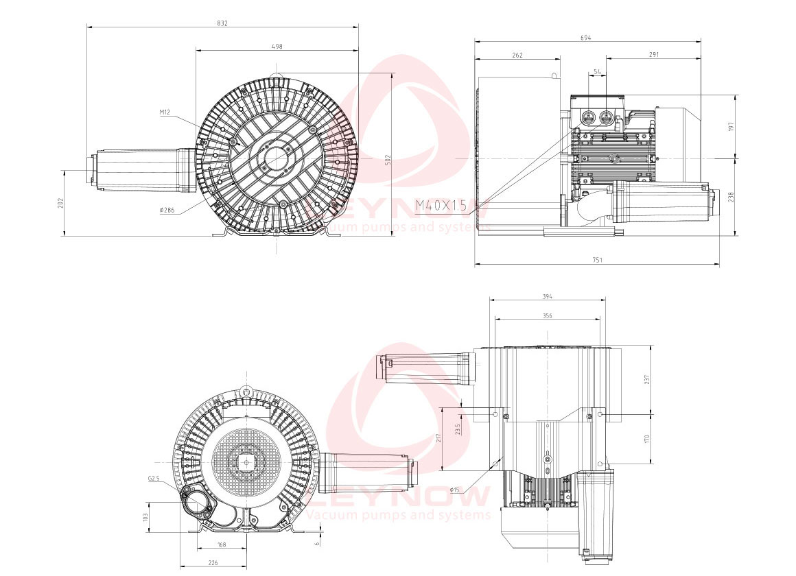電機功率:11 Kw 極限真空:430 mBar 額定電壓:345-415△/600-720Y 額定流量:520 m3/h 額定電流:28.0 A 最大吹力:400 mBar 噪聲等級:74 dB(A) 產品重量:123 Kg