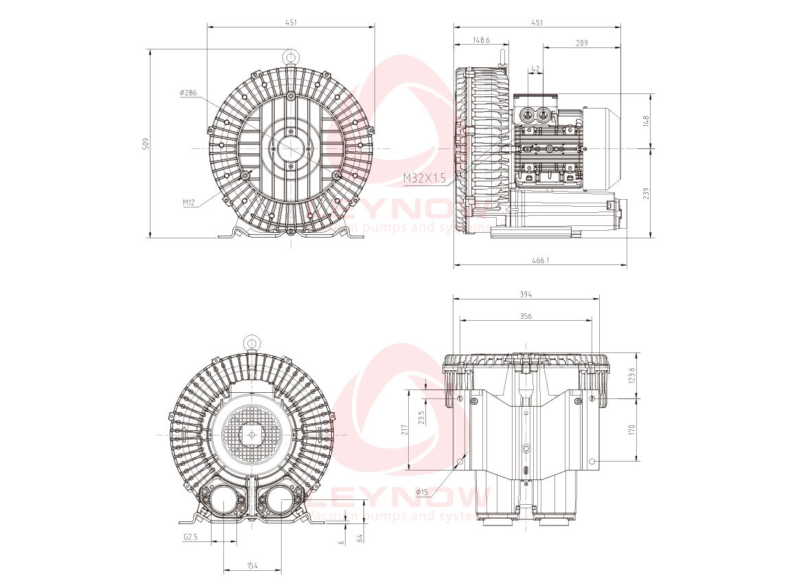 電機功率:7.5 Kw 極限真空:270 mBar 額定電壓:345-415△/600-720Y 額定流量:700 m3/h 額定電流:16.7 A 最大吹力:180 mBar 噪聲等級:70 dB(A) 產品重量:74 Kg